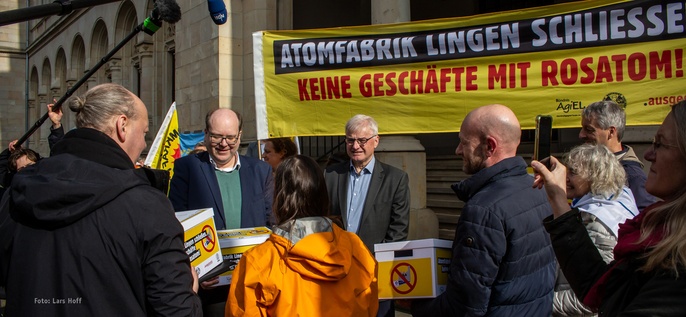 ein toller Erfolg, der bundesweit Schlagzeilen machte: Viele Tausend Menschen haben gegen den Einstieg des russischen Atomkonzerns Rosatom in die Brennelemente-Produktion in Lingen Einwände erhoben.