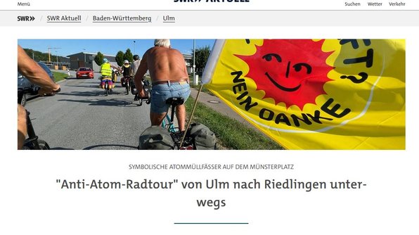 SWR am 26.8.2022: Ulm war am Donnerstag Ziel der elften Etappe der bundesweiten "Anti-Atom-Radtour". Am Freitag zogen die Atomkraftgegner und -gegnerinnen weiter nach Oberschwaben. »