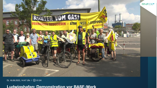 rnf.de am 16.8.2022: „Runter vom Gas!“ forderten Atomkraft-Gegner und kritische Aktionäre »