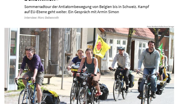 Junge Welt am 6.7.2022: Sommerradtour der Antiatombewegung von Belgien bis in Schweiz. Kampf auf EU-Ebene geht weiter. Ein Gespräch mit Armin Simon »