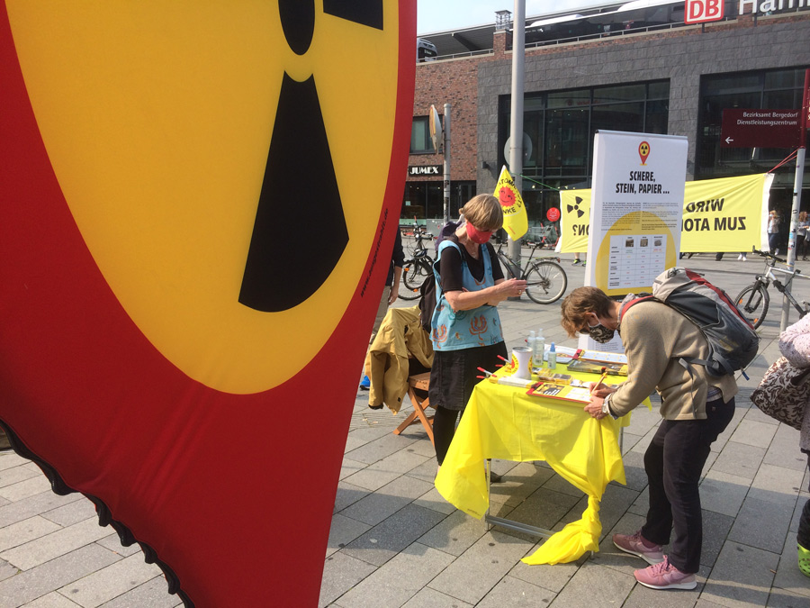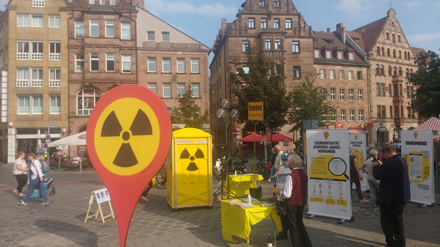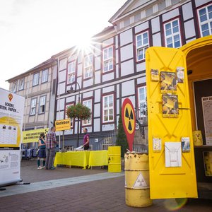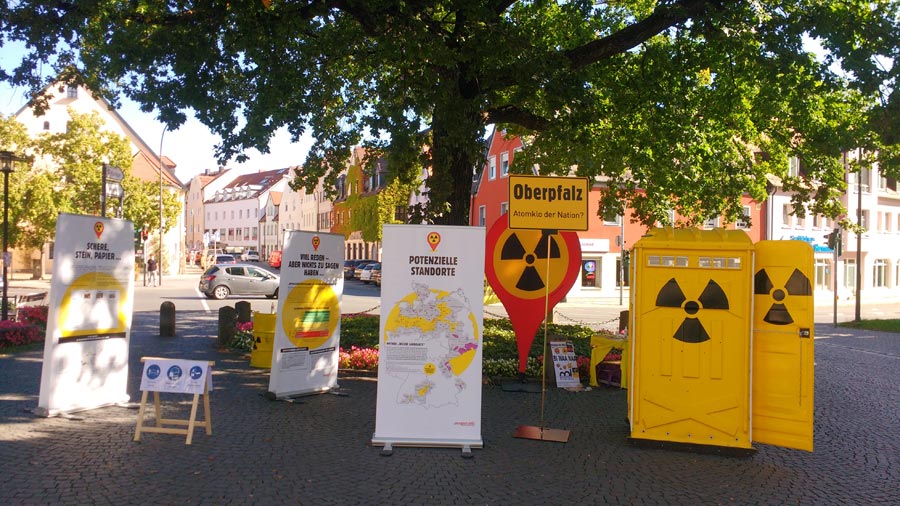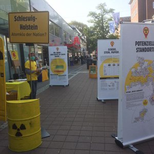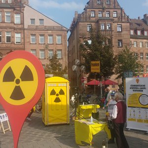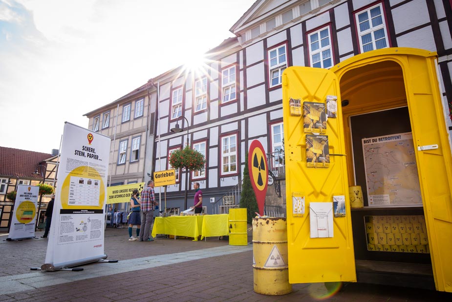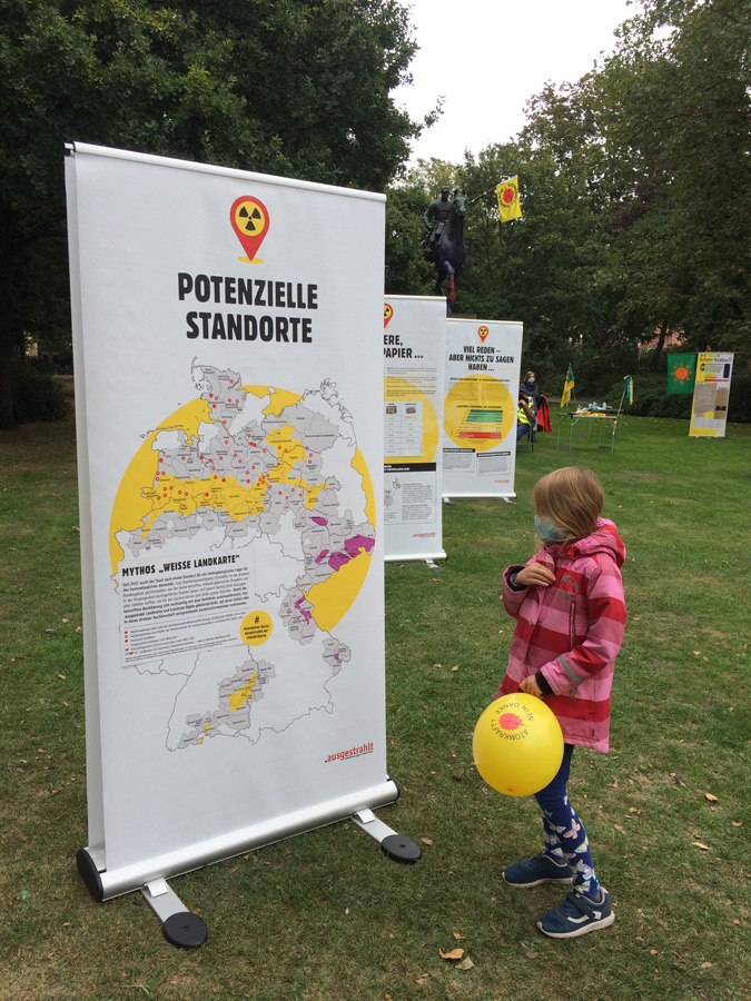 Stell Dir vor, in Deiner Stadt steht auf dem Markplatz oder in der Fußgänger*innen-Zone ein zum „Atomklo“ umgebautes Dixi-Klo, das auf die Standortsuche aufmerksam macht. Dazu kommt eine wetterfeste Ausstellung zum Thema und viel Infomaterial. .ausgestrahlt plant in den Sommermonaten 2021 eine Tour durch die Republik, um in potenziell betroffenen Regionen auf das Thema aufmerksam zu machen.
