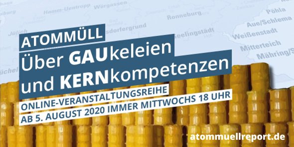 Die Online-Veranstaltungsreihe des Fachportals Atommüllreport startet am 5. August 2020 und findet immer mittwochs von 18 bis 19 Uhr statt. Du kannst an einzelnen Terminen teilnehmen, später in die Reihe einsteigen oder jede Veranstaltung besuchen und so einen guten Überblick über die verschiedenen Facetten des Themas erhalten. Bitte melde Dich für jede Veranstaltung einzeln über den jeweiligen Anmeldelink an. Dann erhälst Du entsprechende Zugangsdaten sowie weitere technische Hinweise.