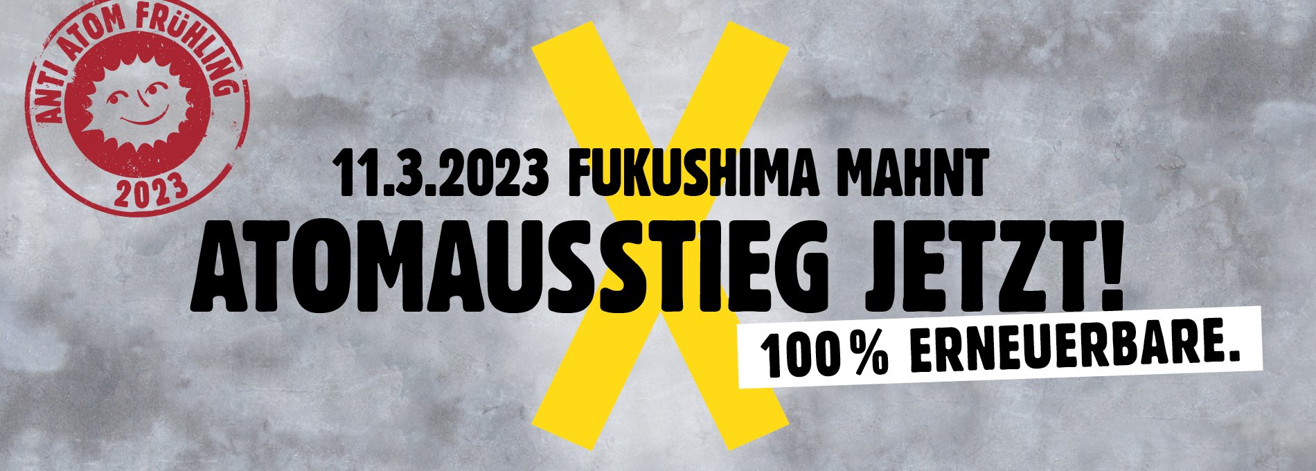- Nutze unsere Sharepics und die Hashtags #antiatomfrühling und #niXatom, um im Web und in den Sozialen Medien auf den Anti-Atom-Frühling aufmerksam zu machen.
