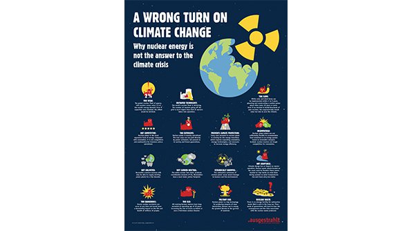 Protecting the climate is among the most pressing issues of our time. Many people are concerned about how we can reduce greenhouse gases in the atmosphere and at the same time meet a growing demand for energy. The pro-nuclear lobby is taking advantage of this uncertainty, propagating nuclear power against climate change. Yet the supposed climate benefits of this high-risk technology have long been disproven – nuclear power is too weak, too slow, too expensive.
