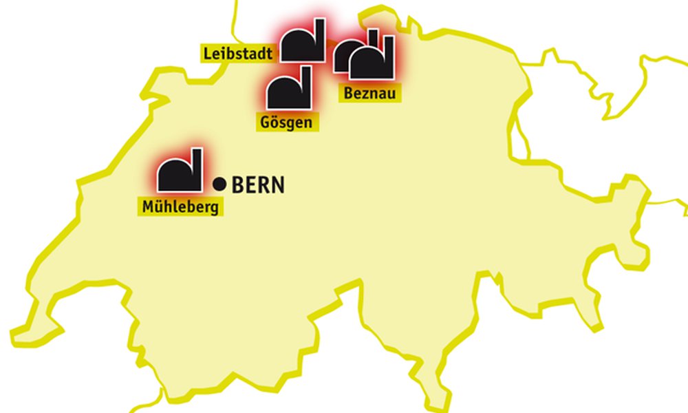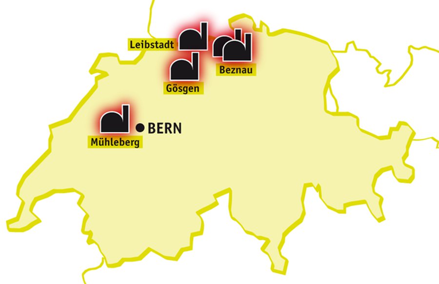 Besonders riskant sind die Uralt-Meiler Mühleberg bei Bern, baugleich mit Fukushima, sowie die beiden Druckwasserreaktoren Beznau I und II, keine zehn Kilometer südlich der Grenze bei Waldshut (D). Alle drei Reaktoren sind seit über 40 Jahren in Betrieb – obwohl sie ursprünglich nur für eine Laufzeit von maximal 30 Jahren konzipiert wurden. Beznau I (Inbetriebnahme 1969) ist der dienstälteste Reaktor der Welt! Entsprechend lang ist die Mängelliste: Korrosionsschäden, Risse im Reaktordeckel, katastrophale Notstromversorgung – um nur einige Punkte zu nennen. Mit Nachrüstungen will die Betreiberfirma Axpo die beiden Reaktoren bis zu 60 Jahre in Betrieb halten – ein weltweit einmaliges Experiment.