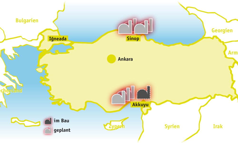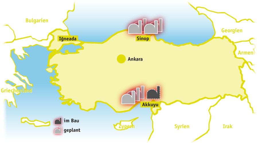 Auch auf dem Weg zum Hotel, an den Brücken, auf der Straßenbahn, überall finden sich die Werbesprüche, die Atomkraft als saubere, nachhaltige, sichere Energiequelle preisen, die das Land unabhängig machen würde. Ministerpräsident Erdoğan und sein Energieminister Yıldız wollen um jeden Preis acht oder mehr AKW errichten lassen, es wären die ersten in der Türkei. Der russische Staatskonzern Rosatom soll in Akkuyu, an der Mittelmeerküste 150 Kilometer westlich der Großstadt Mersin, insgesamt vier 1.200-Megawatt-Reaktoren bauen, finanzieren und betreiben, ein japanisch-französisches Konsortium von Mitsubishi und GDF Suez vier weitere in der Stadt Sinop am Schwarzen Meer errichten. Als ein dritter Standort ist İğneada, unweit der Grenze zu Bulgarien, im Gespräch.