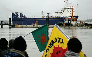 Schwer bewacht, abgeschirmt und erfolgreich geheim gehalten hat ein Atomtransport quer durch Deutschland stattgefunden. In Nordenham sind LKW auf ein Schiff mit Ziel USA verladen worden. In Lingen formiert sich unterdessen der Protest gegen Brennelementelieferungen nach Belgien und Frankreich.