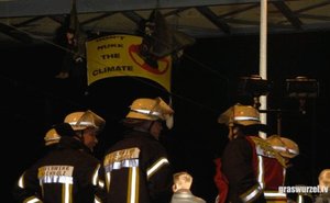 Nach Beobachtungen im Hamburger Hafen, wo die Fracht von Bord eines Schiffes aus Namibia gelöscht und von dort auf Waggons abtransportiert wurde, konnten zwei AktivistInnen sich gegen Mitternacht in Buchholz (Nordheide), 30km südlich von Hamburg, von einer Brücke über die Gleise abseilen. Zur Räumung brauchte es Spezialkräfte der Feuerwehr, erst nach vier Stunden Stillstand konnte der Zug seine Fahrt fortsetzen.
