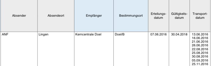 Anti-Atom-AktivistInnen berichten, dass schon im Juni und August jeweils vier Brennelementtransporte von Lingen nach Doel gerollt sind. Nun sollen laut der BfS-Transportliste bis April 2018 noch bis zu 40 weiteren durchgeführt werden. In einer gemeinsamen Presseerklärung zeigen sich Umweltverbände und Anti-Atomkraft-Initiativen wie der IPPNW, die BI Lüchow-Dannenberg oder das Aktionsbündnis Münsterland gegen Atomanlagen „entsetzt, dass sich die Bundesregierung damit weiterhin mitverantwortlich macht für den ungestörten Weiterbetrieb der äußerst brisanten Schrottreaktoren in Doel“.