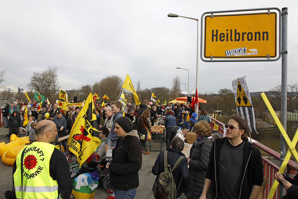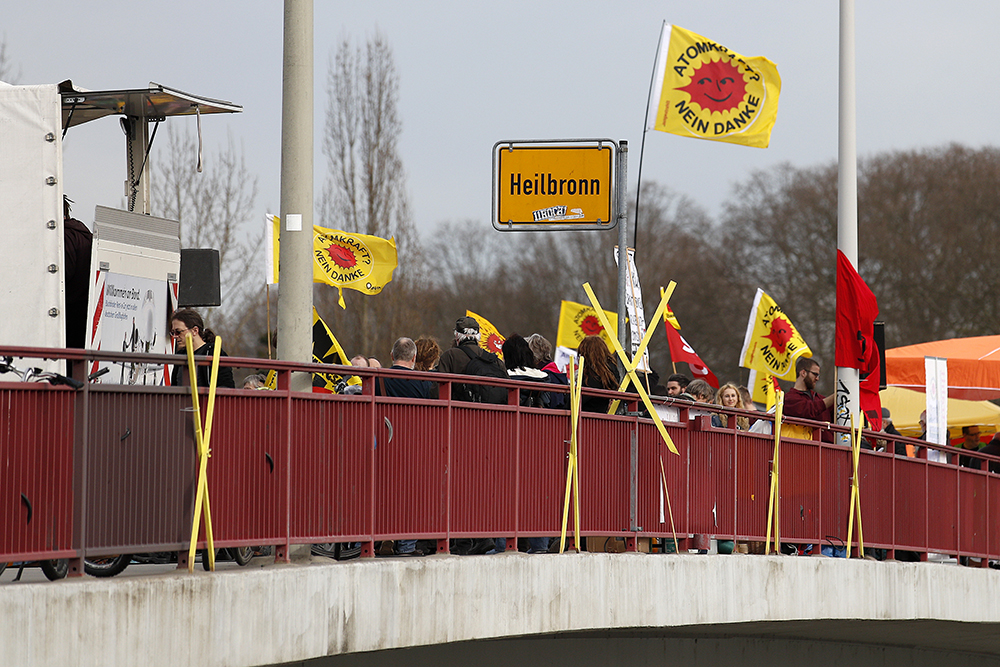 Die Abschlusskundgebung fand direkt über dem Neckar statt und endete mit einem Grußwort aus Japan. Die Umweltaktivistin Mika Kumazaki erinnerte daran, dass sechs Jahre nach Beginn der Fukushima-Katastrophe und drei Jahre vor der Olympiade in Tokio noch überhaupt nichts unter Kontrolle ist.