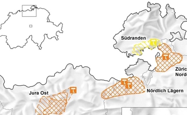 In der Schweiz wird seit 2008 nach jeweils einem Tiefenlager für schwach- und mittelradioaktive sowie einem für hochradioaktive Abfälle gesucht. Derzeit gibt es sechs mögliche Standorte für schwach- und mittelradioaktive Abfälle: Jura-Südfuss, Südranden, Wellenberg, Jura Ost, Nördlich Lägern und Zürich Nordost. Die drei letztgenannten Standorte kommen zusätzlich auch für eine Einlagerung hochradioaktiver Abfälle infrage. In der aktuellen „Etappe 3“ sollen diese jetzt vertieft untersucht werden.