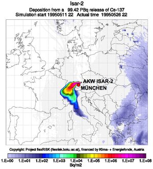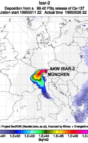 Isar-2 liegt knappe 70km in nordwestlicher Richtung von München entfernt. Das Projekt "flexRISK" hat vor ein paar Jahren die geographische Verteilung des Risikos durch schwere Unfälle in Nuklearanlagen, insbesondere Atomkraftwerken (KKW), in Europa untersucht. Bei einem schweren Unfall mit Freisetzung von Radioaktivität im AKW Isar-2 sehen die Wissenschaftler*innen eine bis zu 10%ige Wahrscheinlichkeit, dass München für lange Zeit unbewohnbar wird. Simulationsgrundlage ist die Windrichtung, die in den Szenarien die radioaktive Wolke meist von der Großstadt wegbläst. Zusätzlich gibt es in den umliegenden Landkreisen „keinen konkreten Plan, wie wir in so einem Fall evakuieren würden“, wissen Katastrophenschützer*innen.
