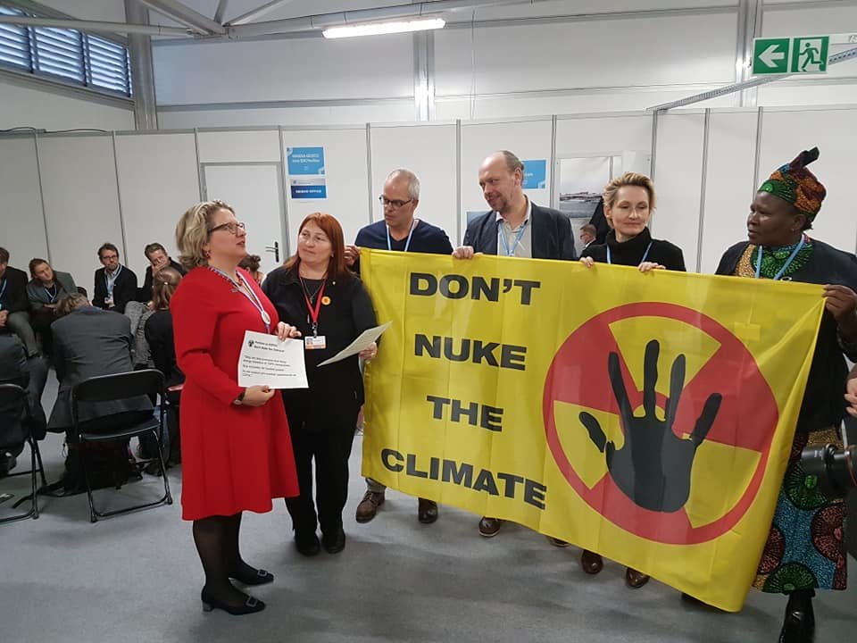 „Stop the false promises that delay energy transition to 100% renewables. Stop subsidies for nuclear power. Do not support pro-nuclear statement at COP24.”