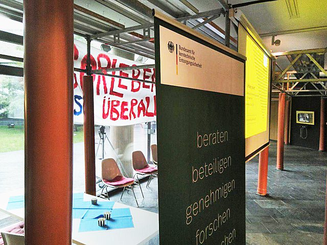 In Hannover nutzte das BfE eine Ausstellung zum Gorleben Treck als Kulisse für eine eigene Informationsausstellung zum Suchverfahren.