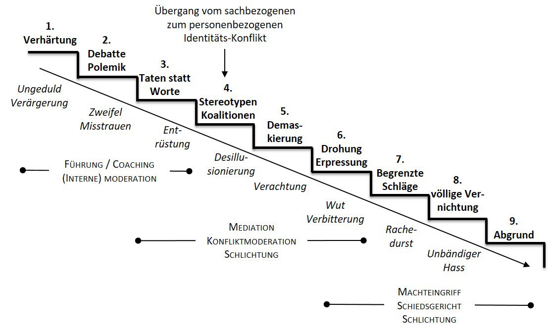 Das Bundesamt für kerntechnische Entsorgungssicherheit (BfE) bedient sich leider – wie auch in der Vergangenheit – weiterhin des Dreiklangs aus ignorieren, diffamieren und verklagen und hat es somit geschafft, den Konflikt um die Lagersuche noch vor der Benennung der Teilgebiete zu eskalieren. Nach der „Treppe der Konflikteskalation“ des Konfliktexperten Friedrich Glasl ist das BfE schon auf Stufe 7 angelangt, auf der eine Moderation nicht mehr sinnvoll ist, sondern vielmehr ein Machteingriff erfolgen müsste, um anders mit dem Konflikt umzugehen.
