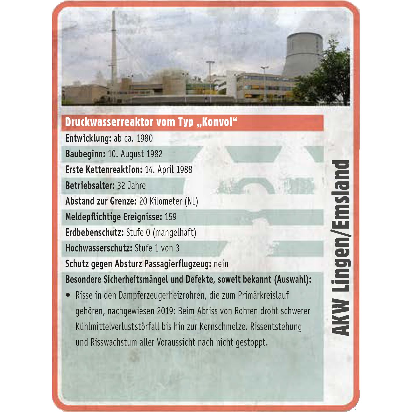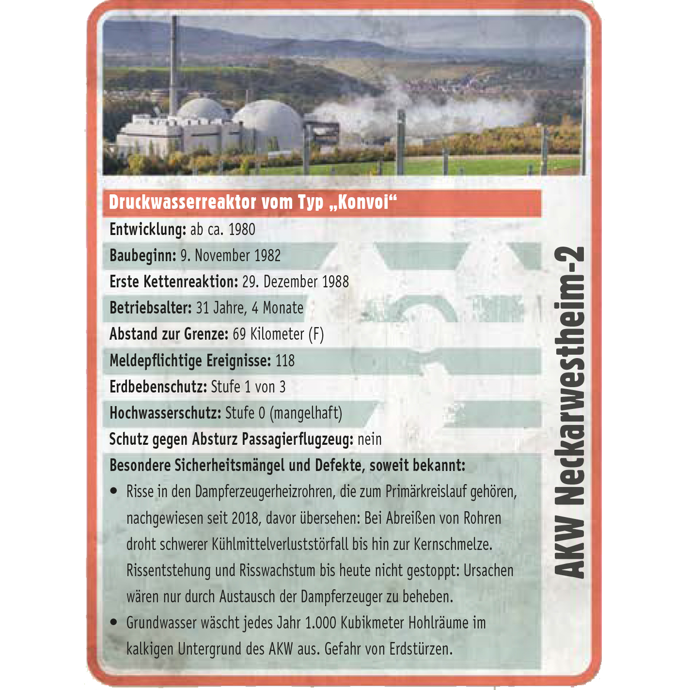 Alle Reaktorbetreiber weltweit bezeichnen ihre Anlagen als „sicher“ – bis die Realität das Gegenteil beweist. Sowohl in Deutschland als auch in der EU sind AKW schon mehrfach nur knapp an der Katastrophe vorbeigeschrammt; dass es nicht zum Schlimmsten kam, war jedes Mal nur Glück. Und anders als in Fukushima an der Ostküste Japans, wo der Wind vier Fünftel der in die Luft freigesetzten Radioaktivität auf den Pazifik blasen konnte, gibt es hierzulande um die meisten AKW keinen Ozean weit und breit, schon gar nicht in Hauptwindrichtung. Die radioaktive Wolke nach einem Atomunfall würde also mit voller Wucht in dicht besiedeltes Gebiet ziehen. Vom AKW Grohnde sind es gerade einmal 40 Kilometer bis Hannover, vom AKW Brokdorf in die Millionenstadt Hamburg 50 Kilometer, vom AKW Neckarwestheim‑2 bis zum Stuttgarter Hauptbahnhof sogar nur 30. Bei mittlerer Windgeschwindigkeit braucht die radioaktive Wolke dafür eine halbe bis ganze Stunde.