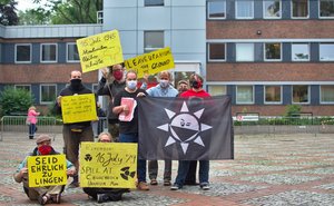 Weil sie nach dem Störfall gemeinsam mit anderen die Zufahrt zum Gelände der Brennelementfabrik blockierten, müssen sich aktuell drei Aktivist*innen vor Gericht verantworten. Am 21. Januar 2019 waren sog. Tripods in der Einfahrt aufgebaut worden und so „ein Zulieferer mit Gewalt an der Weiterfahrt“ gehindert worden, heißt es von Seiten der Staatsanwaltschaft Osnabrück. Im März wurde bereits die erste von insgesamt 16 Aktivist*innen vom Vorwurf der „Nötigung“ freigesprochen, weil selbst die Polizei keinerlei „Gewalt“ feststellen konnte.