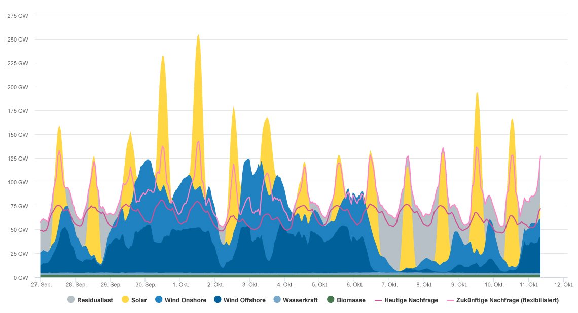 Ein kleiner Prozentsatz der Erneuerbaren Energien, Wasser- und Biomassekraftwerke etwa, sind steuerbar. Vollkommen unterschätzt wird bisher die Möglichkeit, die Nachfrage zu flexibilisieren und so kurzfristige Schwankungen auszugleichen. Dies gewinnt gerade mit dem Laden von Elektrofahrzeugen an Bedeutung. Zur Absicherung, schon allein wegen möglicher Dunkelflauten, brauchen wir trotzdem weiterhin regelbare Kraftwerke.
