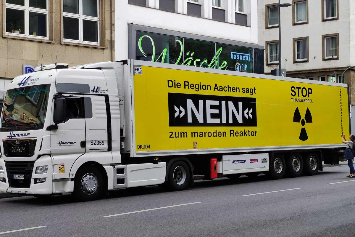 9.7.22: Drohende Laufzeitverlängerung und Menschenketten: Die erste Etappe der Nordtour führt am 9. Juli nach Belgien. Auftaktkundgebung am AKW.
