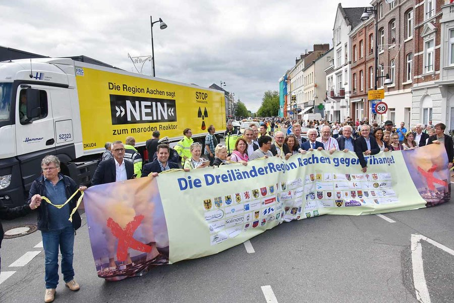 Wo spielt der Fußballclub zugunsten des Anti-Atom-Widerstands, leiert der Städteregionspräsident Anti-AKW-Klagen von über 100 Städten an, lockt die größte Anti-Atom-Aktion Europas Zehntausende Menschen auf die Straße und haben bis dato mehr als 4 Millionen Menschen symbolisch den „Tihange-Aus“-Hebel umgelegt? Das ist Aachen, die Karnevalshochburg und, jedenfalls 2017, heimliche Anti-Atom-Hauptstadt der Republik. Nur 65 Kilometer Luftlinie sind es bis zu den Pannenmeilern in Tihange; kaum eine andere Stadt ist sich ihrer Bedrohung durch Atomanlagen so bewusst – nicht zuletzt ein Erfolg des „Aachener Aktionsbündnisses gegen Atomenergie“ und anderer Initiativen.