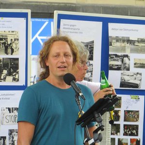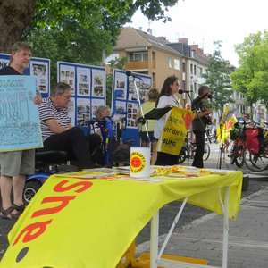 Kundgebung in Krefeld mit Sprecher*innen der früheren BINKA (Bürgerinitiative Niederrhein Krefeld gegen Atomanlagen)