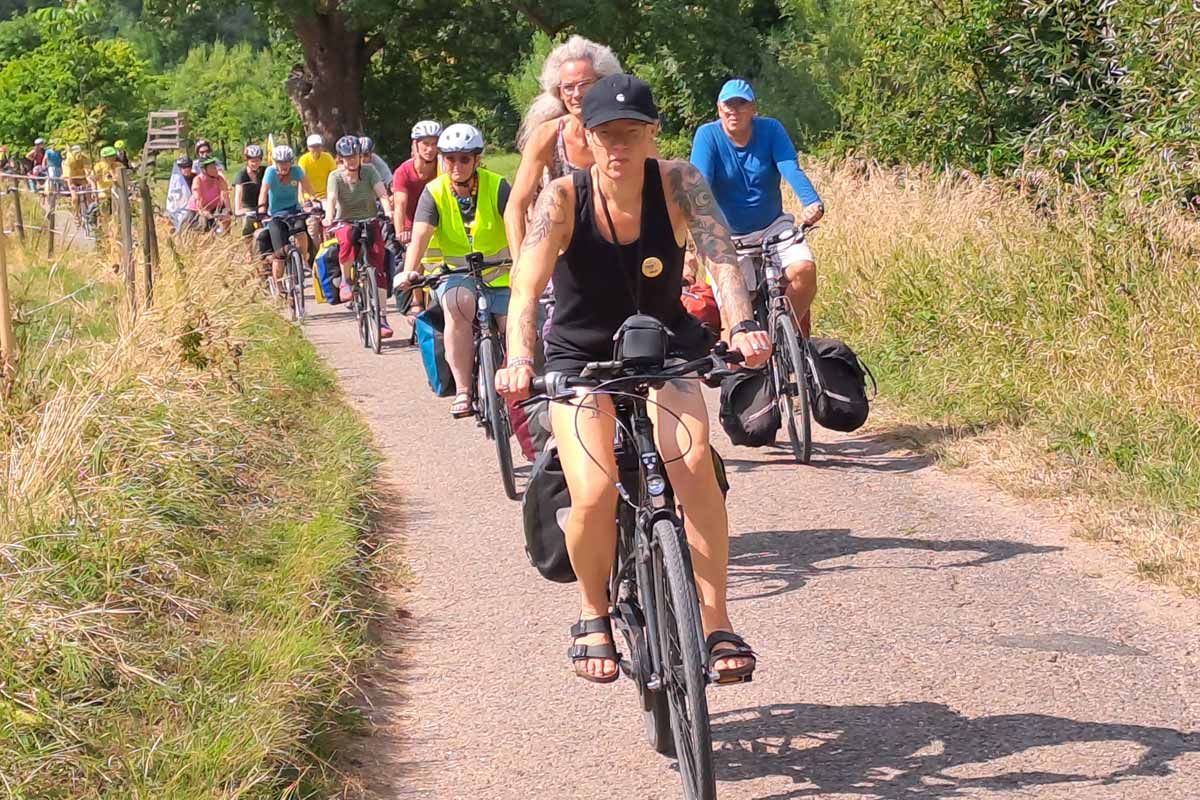 15.8.2022: Die 2. Etappe der Südtour führt über Mörfelden-Walldorf, Büttelborn und Biblis, wo der leistungsstärkste Reaktor der Welt in einer ausgewiesenen Erdbebenzone betrieben wurde - und es fast zur Kernschmelze kam. - Die Südtour der Anti-Atom-Radtour startet: Von Kahl nach Langen