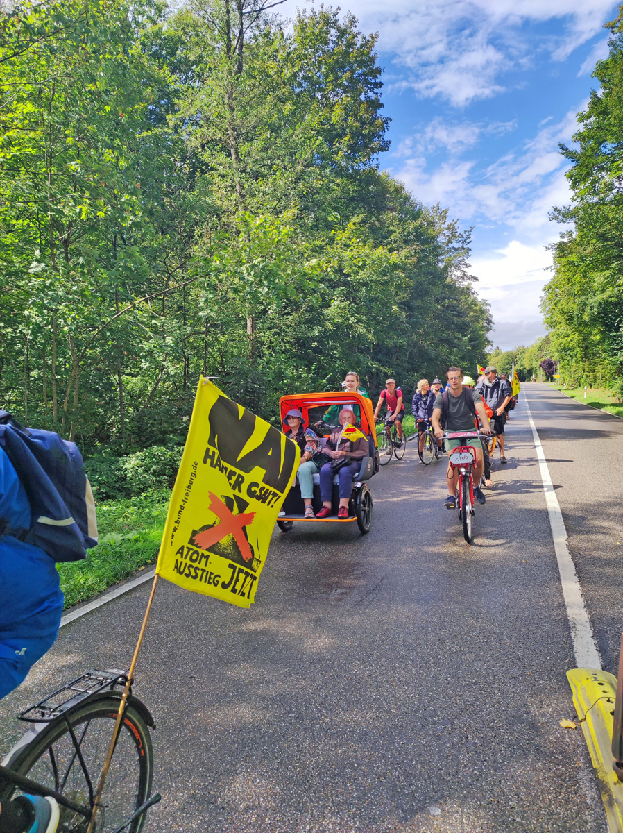 Endspurt der Anti-Atom-Radtour 2022: Etappe 20 führt in die Solarhauptstadt Freiburg. Programm am Nachmittag ist ein familienfreundliches Anti-Atom-Fest und am Abend das Abschaltfest in der Fabrik.
