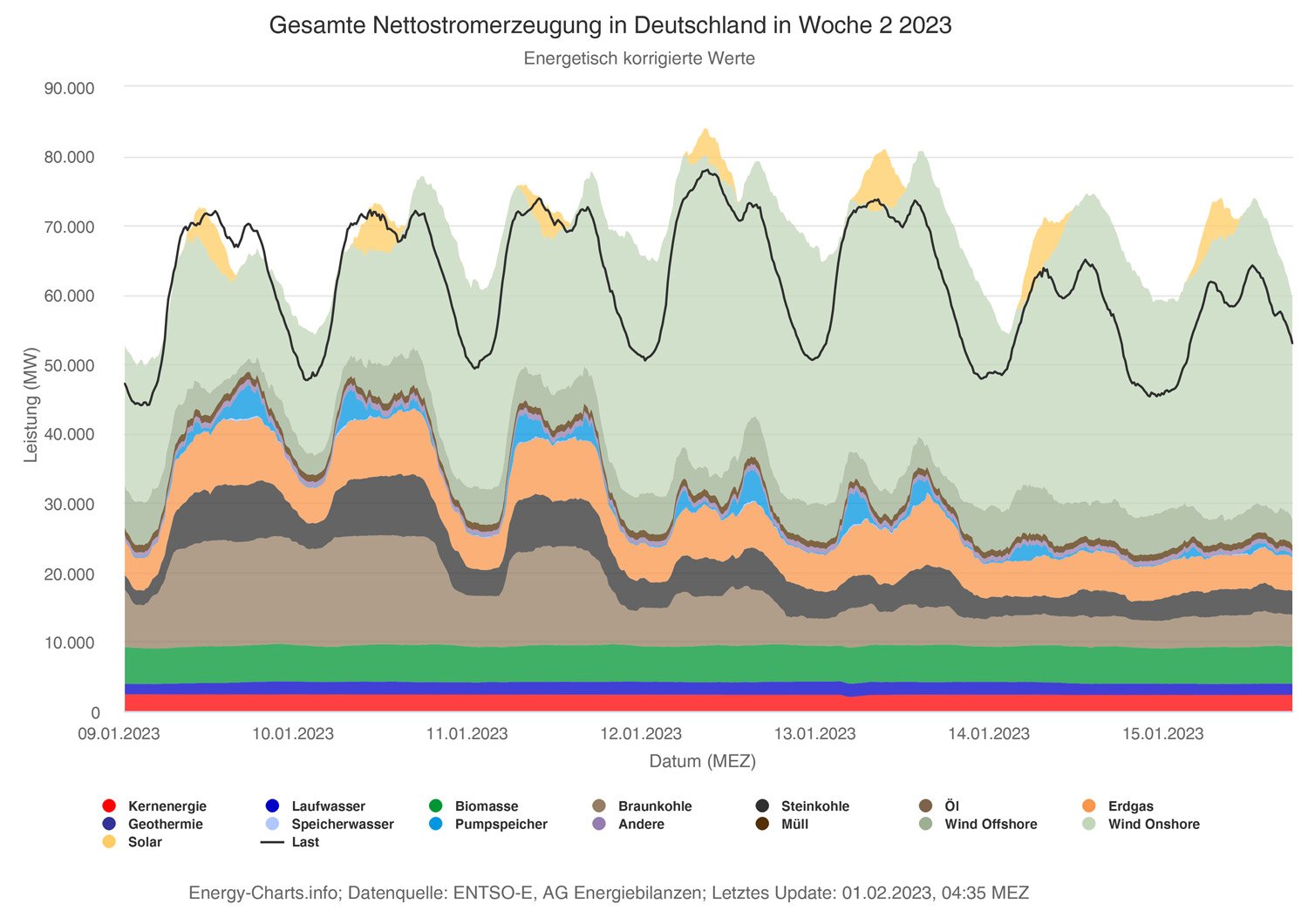 Tatsächlich gab es nie auch nur den Hauch eines Versorgungsproblems. Der Stromverbrauch im TransnetBW-Gebiet, das in etwa Baden-Württemberg entspricht, liegt im fraglichen Zeitraum bei 7.000 Megawatt, deutlich niedriger als an Werktagen. Davon ist knapp die Hälfte erneuerbarer Strom aus Baden-Württemberg selbst: rund 1.000 Megawatt Windkraft, 600 Megawatt Biomasse und bis zu 1.500 Megawatt in Wasserkraft.