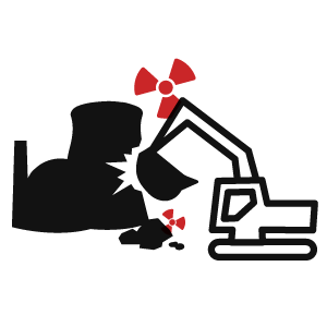 Bei mehr als 30 Atomkraftwerken steht der Rückbau noch aus. Beim Betrieb eines AKW wird auch das Kraftwerk selbst zu strahlendem Schrott. Insgesamt fallen beim Abriss eines einzigen AKW rund 300.000 bis 500.000 Tonnen Material an, von dem nur ein sehr kleiner Teil als Atommüll behandelt und gelagert wird. Der Großteil wird entweder direkt „freigemessen“ oder so weit bearbeitet, bis bei Stichproben der „Freigabewert“ von 10 Millisievert erreicht wird. Das suggeriert, es gäbe eine Dosisgrenze, unterhalb der Strahlung unschädlich ist. Dabei führt jede zusätzliche Strahlenbelastung statistisch zu einem Anstieg der Herz-, Kreislauf- und Krebserkrankungen. Das „freigemessene“, aber immer noch strahlende Material landet auf Bauschutt-Deponien, in Müllverbrennungsanlagen oder sogar im Wertstoffkreislauf. Es wird nicht überwacht und kann nicht mehr zurückgeholt werden. Viele Deponiestandorte in Deutschland wehren sich gegen die Lagerung von radioaktivem Müll.