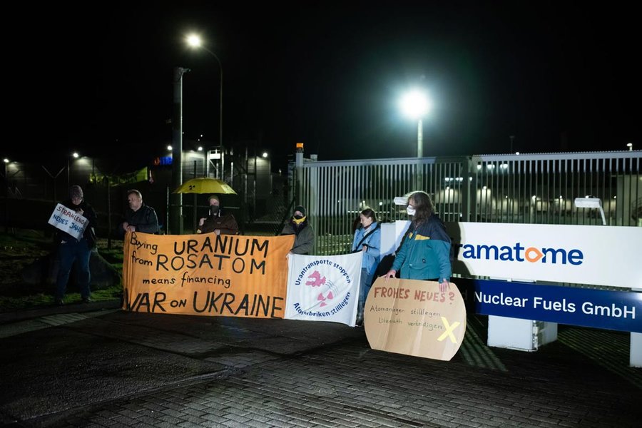 11.3.2022: Als Antwort auf den Angriff auf die Ukraine hat die Betreiberfirma der Urananreicherungsanlage Gronau die Uran-Geschäfte mit Russland gestoppt. Atomkraftgegner*innen warnen unterdessen davor, dass in den von Kämpfen betroffenen ukrainischen Meilern Brennstoff aus Deutschland verwendet wird - und fordern einen umgehenden Exportstopp.