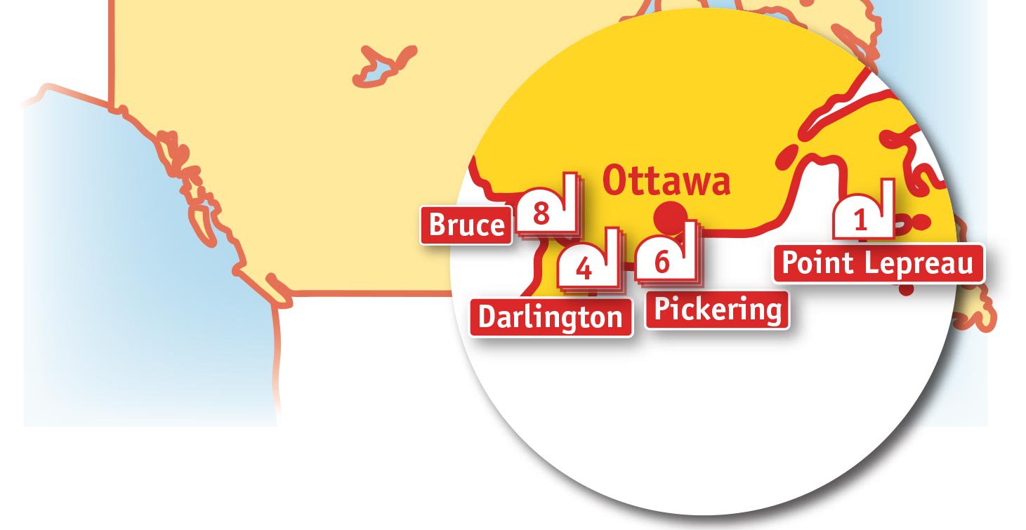 Reaktoren. Diese nutzen Natururan, benötigen also keine Urananreicherung, und erlauben es relativ einfach, Waffenplutonium zu gewinnen. Sie wurden auch nach Indien, Pakistan und Taiwan exportiert. 1978 liefen in Kanada 16 Reaktoren, der allergrößte Teil davon in der Provinz Ontario, acht weitere waren in Bau oder in Auftrag gegeben. Geplant waren noch viel mehr, bestellt aber wurde nach 1978 keiner mehr. Heute liefern noch 19 Reaktoren zusammen ein Siebtel des Stroms.