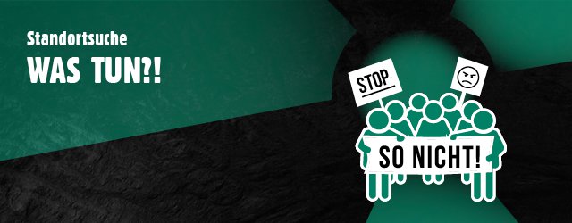 - Melde Dich für die Infomail-Standortsuche an - das kostenlose E-Mail-Abo liefert in unregelmäßigen Abständen kurz und kritisch Updates zum Suchverfahren. Du erfährst interessante Details und wie und wo Du Dich aktiv einmischen kannst.