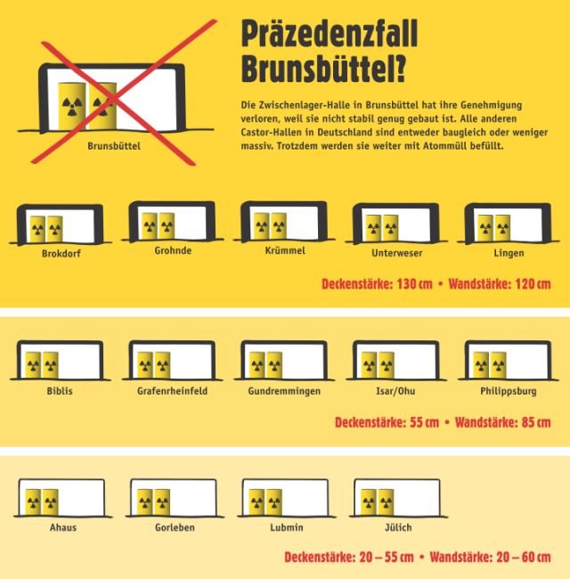 Statt für maximal 40 Jahre muss der hochradioaktive Strahlenmüll also mindestens 100 Jahre zwischenlagern. Bisher gibt es kein Konzept dafür, wie man die Sicherheit der Castor-Behälter und der Lager für einen so langen Zeitraum sicherstellen kann.