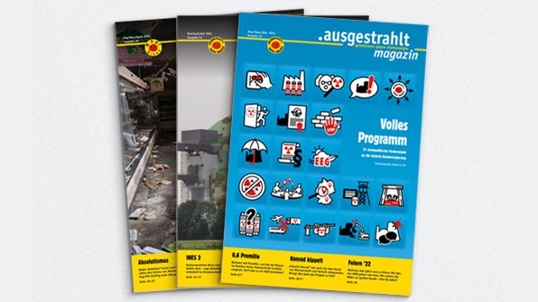 Hintergrundartikel, Analysen und Interviews zu Aktionen und Anti-Atom-Themen liest Du im .ausgestrahlt-Magazin. Das 24seitige Heft erscheint ca. viermal im Jahr und ist kostenlos. Hier kannst Du es abonnieren... »