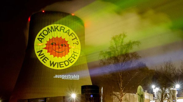 Mit einer Aktion am AKW Brokdorf feiern Atomkraftgegner*innen den zweiten Jahrestag der Abschaltung der letzten AKW in Deutschland.
