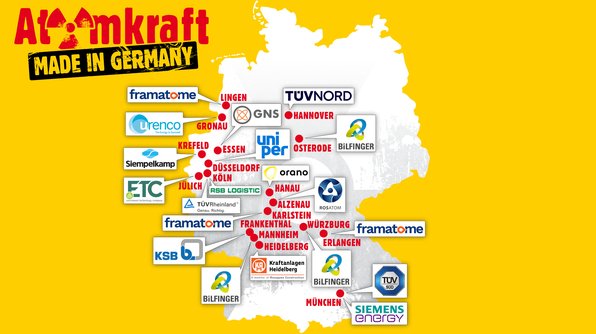 Die Atomkraftwerke sind aus. Zahlreiche Firmen in Deutschland machen weiter Profite mit Bau, Betrieb und Wartung von AKW. Ein Überblick. »