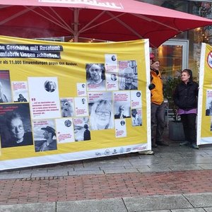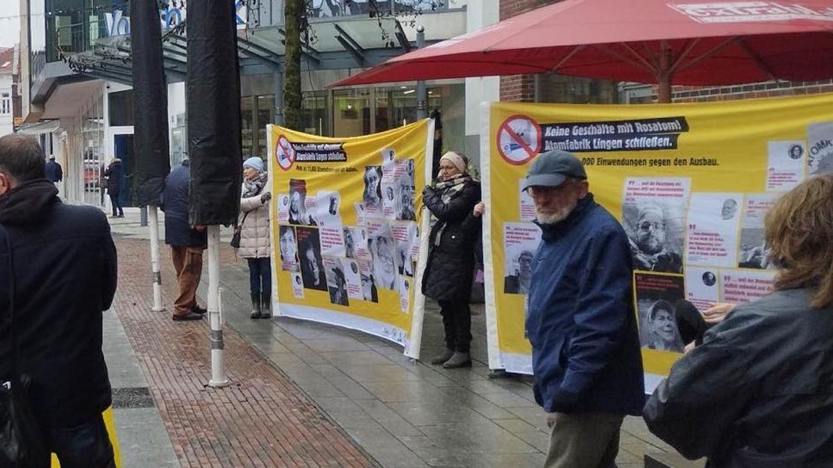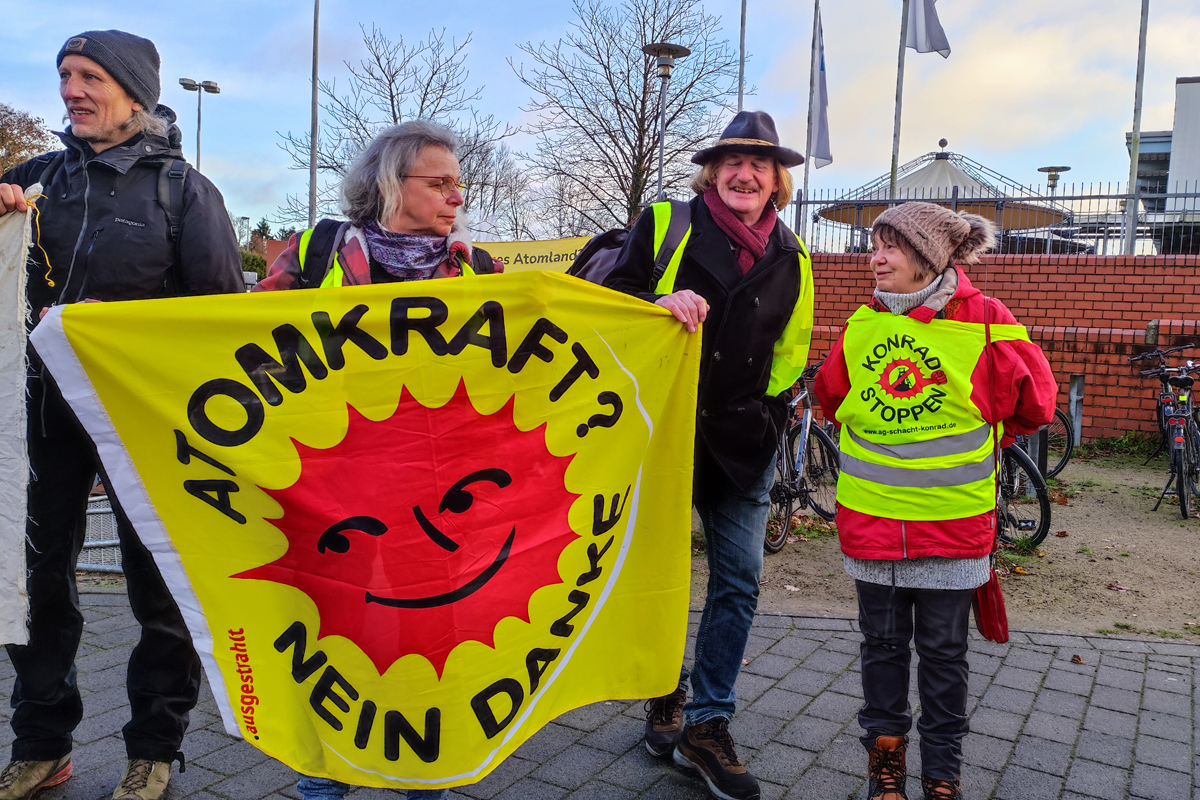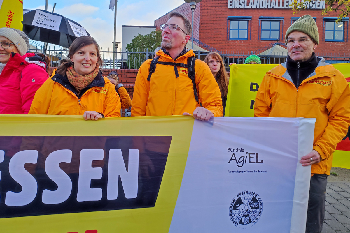 Das .ausgestrahlt-Team ist bei dem Erörterungstermin über die gesamte Dauer vor der Halle mit einer Mahnwache und in der Halle mit sachkundigen Personen präsent.
