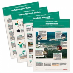 Ob in Schulen, Gemeindehäusern, Kulturzentren, Büchereien, Arztpraxen - die vierteilige Plakatserie eignet sich für alle Räume mit Publikumsverkehr, aber auch für Infostände. Du kannst die Plakate "im Paket" oder hier auch einzeln bestellen.