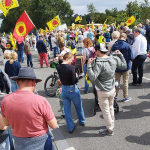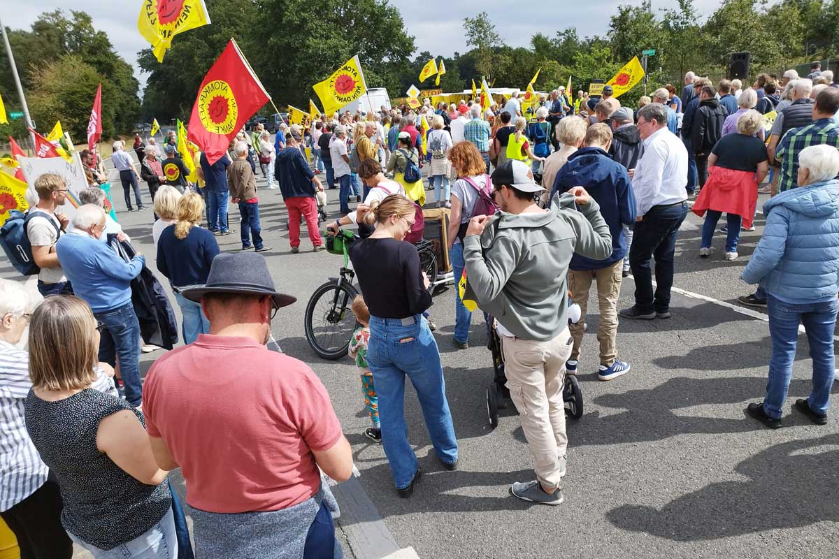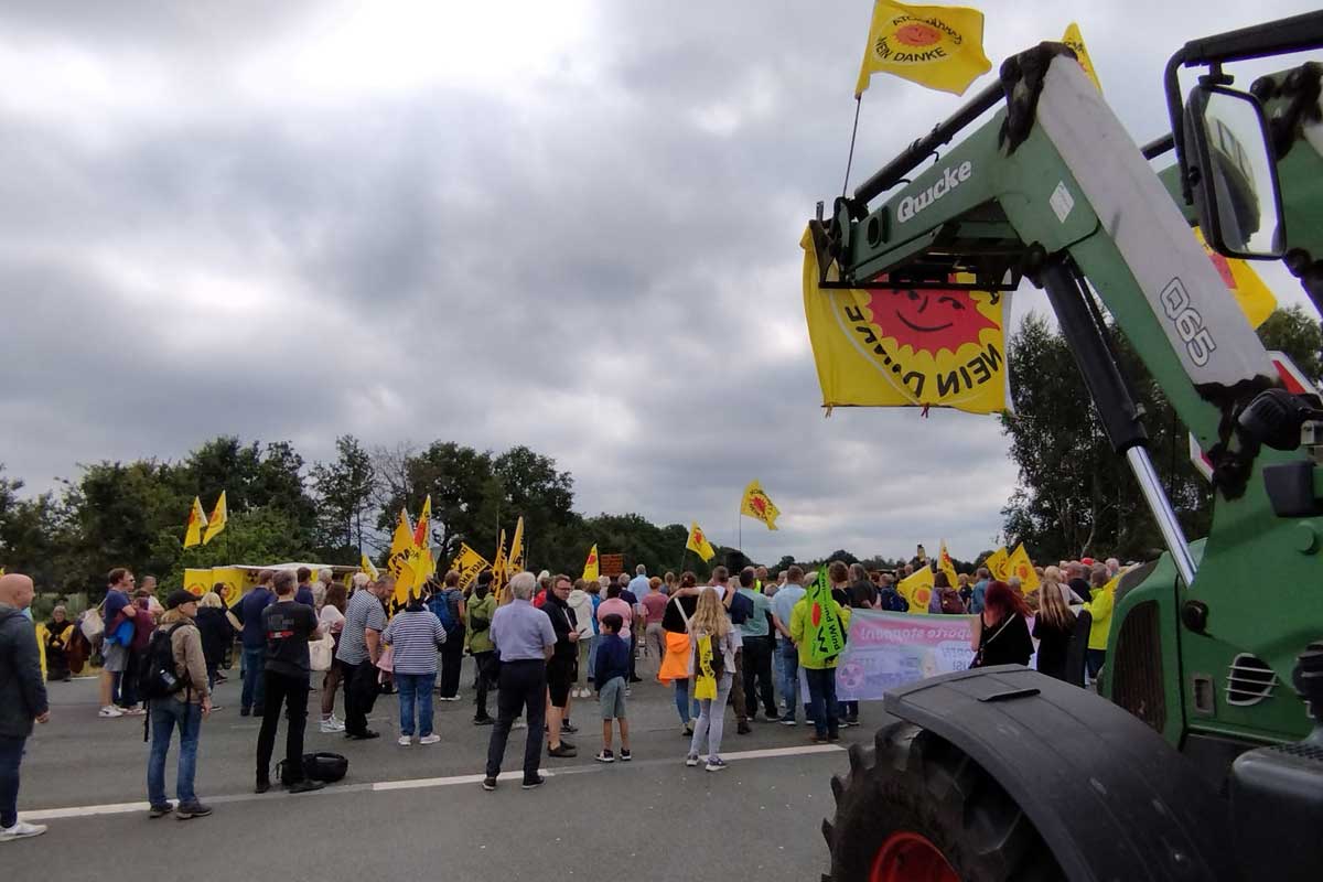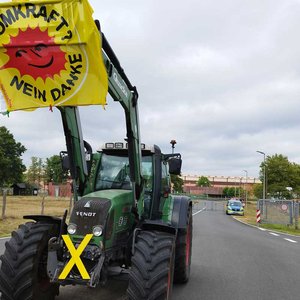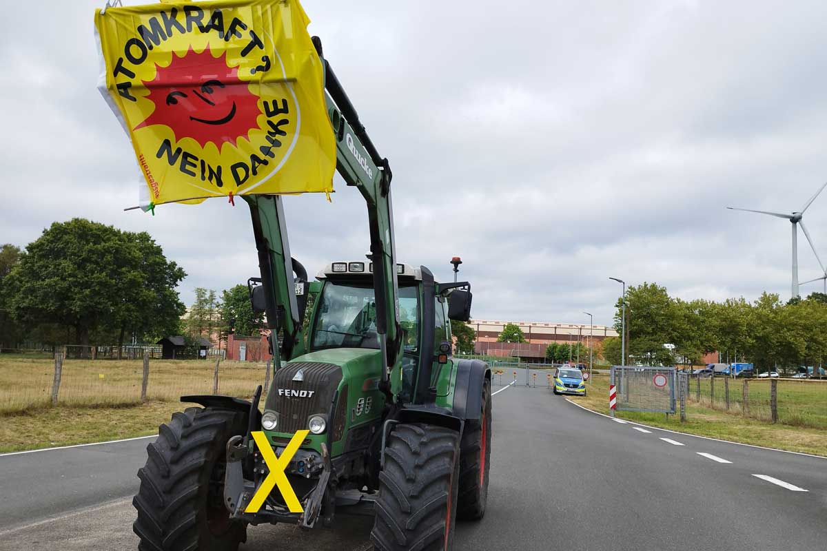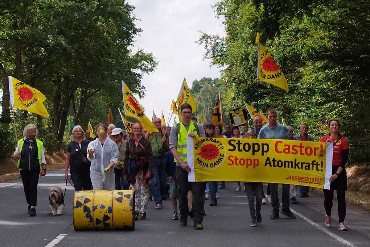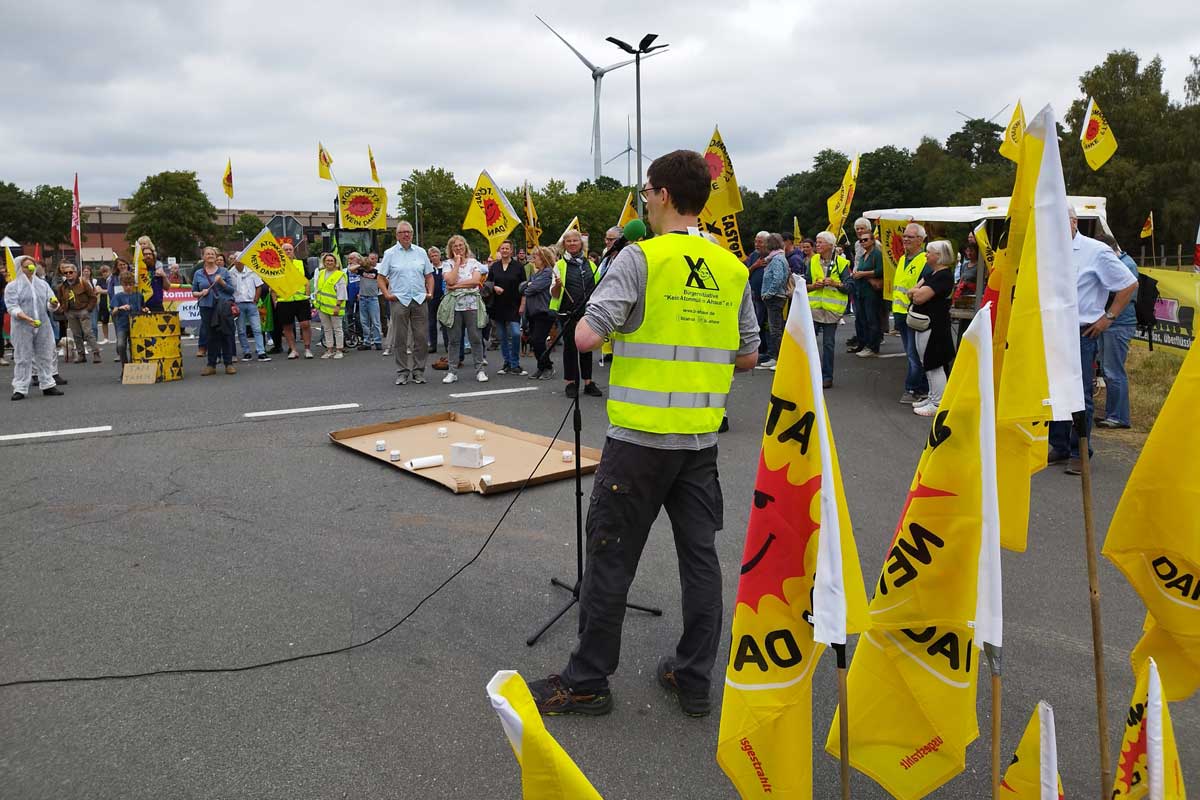 Protest von Atomkraftgegner*innen am 31.8.2025 am Zwischenlager Ahaus gegen Castortransporte