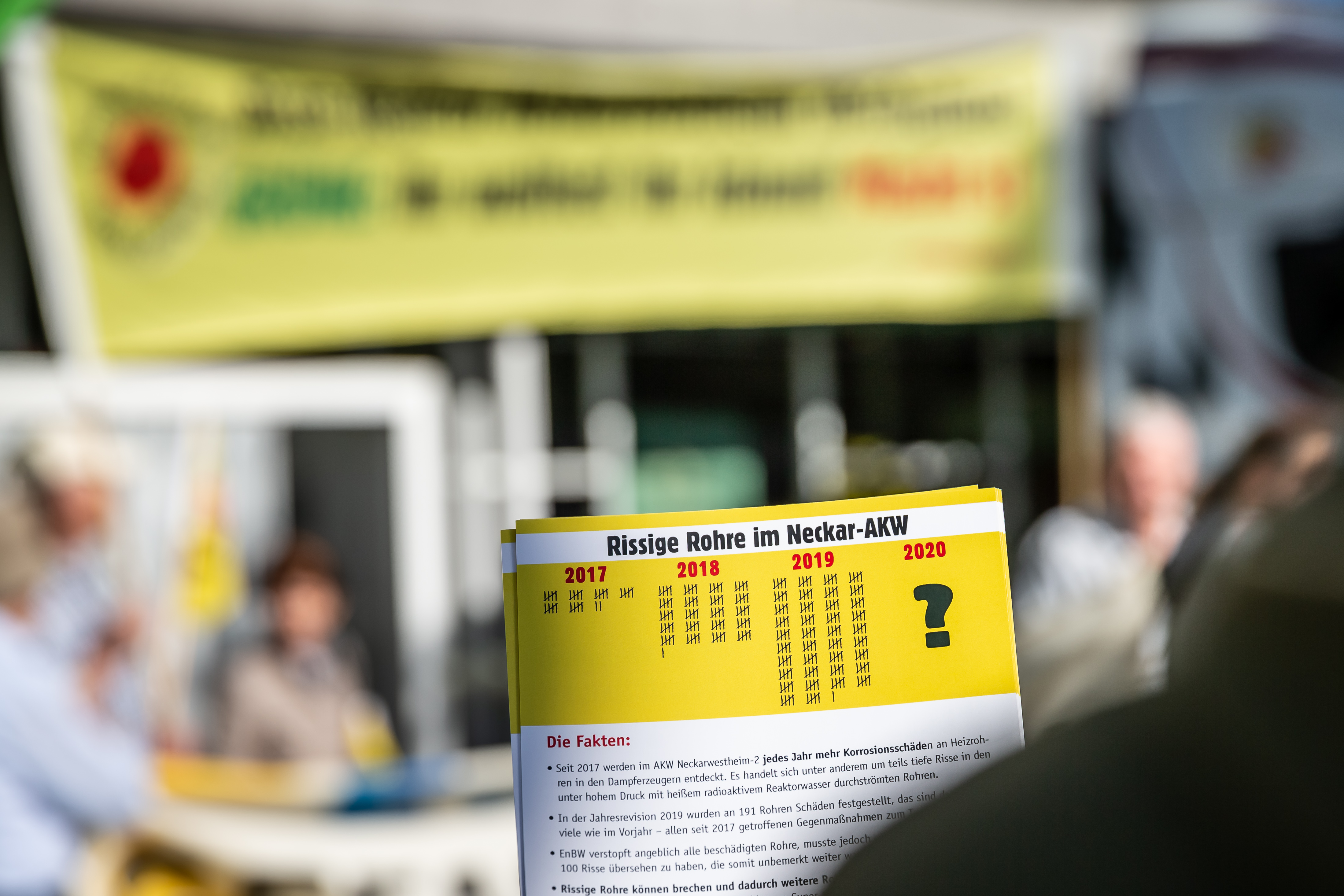 An mehr als 350 dünnwandigen Rohren des AKW Neckarwestheim‑2 sind seit 2018 zum Teil tiefgehende und lange Risse entdeckt worden. Die Ursache der Risse ist bis heute nicht behoben, laufend kommen neue hinzu. Die Risse sind im Betrieb nicht messbar. Da es sich um Spannungsrisskorrosion handelt, ist ein schnelles Risswachstum möglich, zudem ist die Rissentwicklung nicht vorhersagbar. Es besteht daher die akute Gefahr, dass Risse so groß werden, dass Rohre spontan bersten oder abreißen können. Dies haben unter anderem auch zwei vom Umweltministerium Baden-Württemberg selbst beauftragte Gutachter bestätigt.