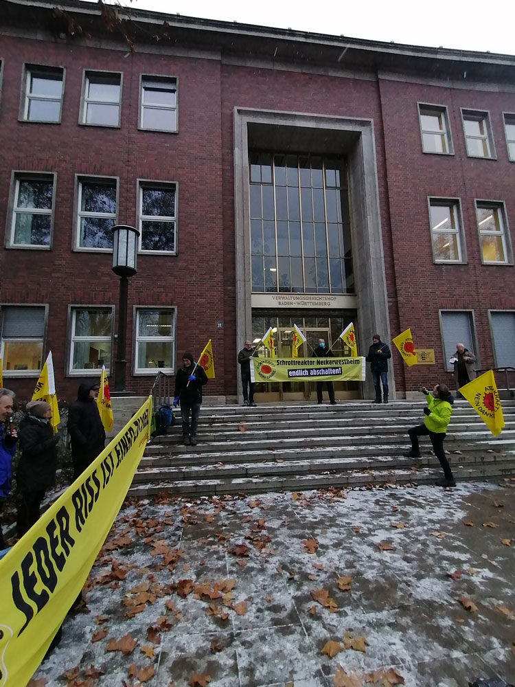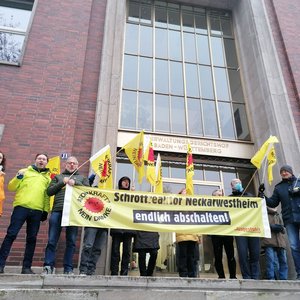 Update 14.12.: Die Verhandlung der Klage am Verwaltungsgerichtshof Mannheim ist nach 4 Stunden geschlossen. Die Vorwürfe der Kläger*innen unterstützt von .ausgestrahlt & anderen konnten nicht ausgeräumt werden. Bleibt abzuwarten ob das Gericht der Argumentation folgt. Urteil folgt nächste Woche mündlich, vstl. im Januar schriftlich.