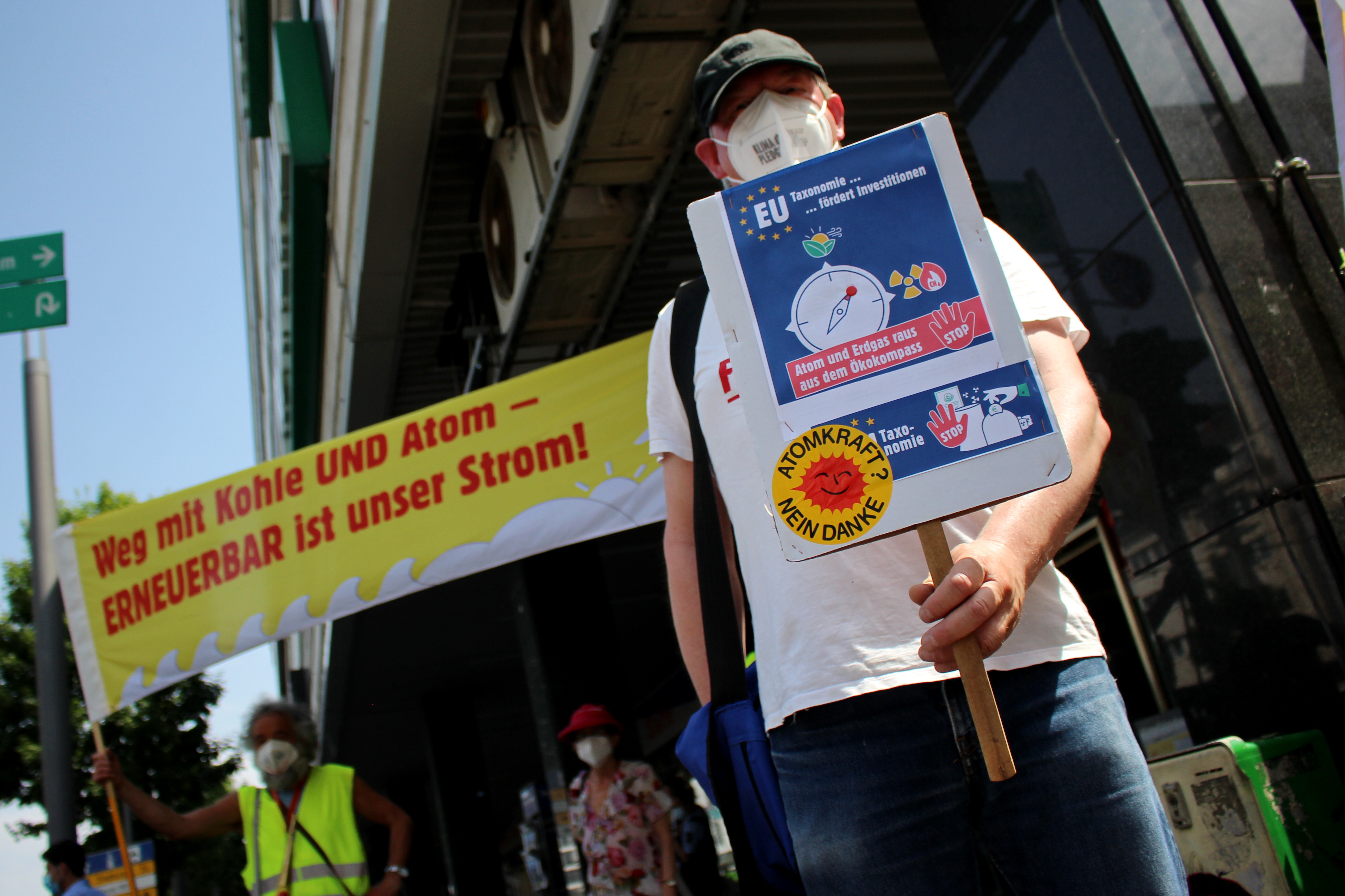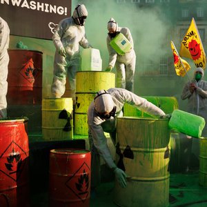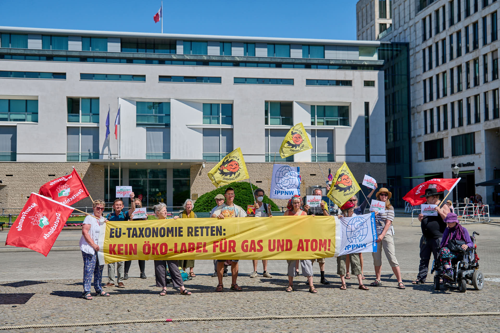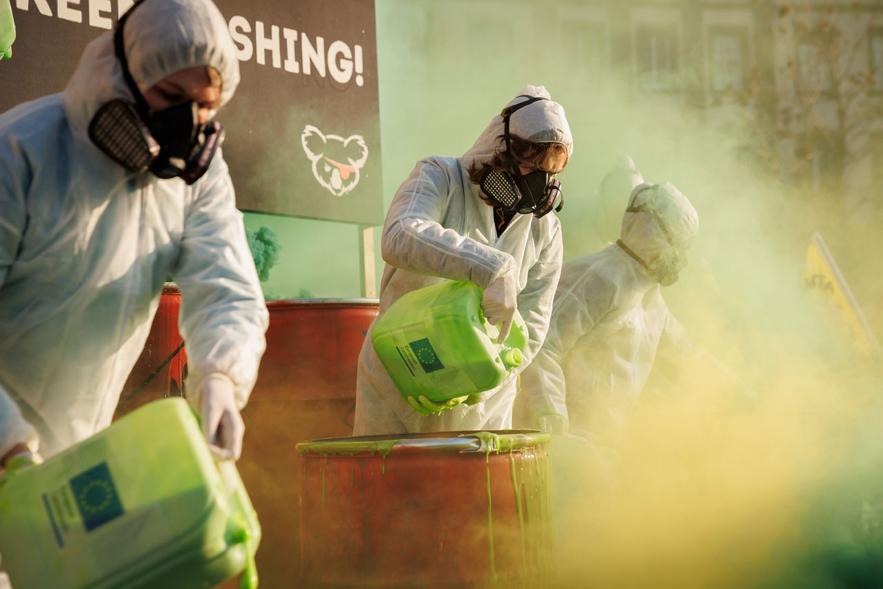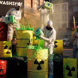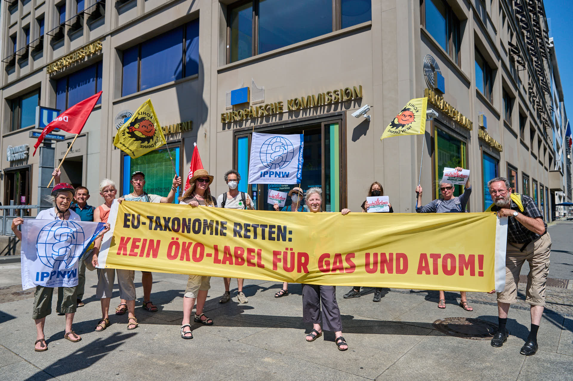 Protest vor EU-Vertretungen gegen Greenwashing von Atom und Erdgas