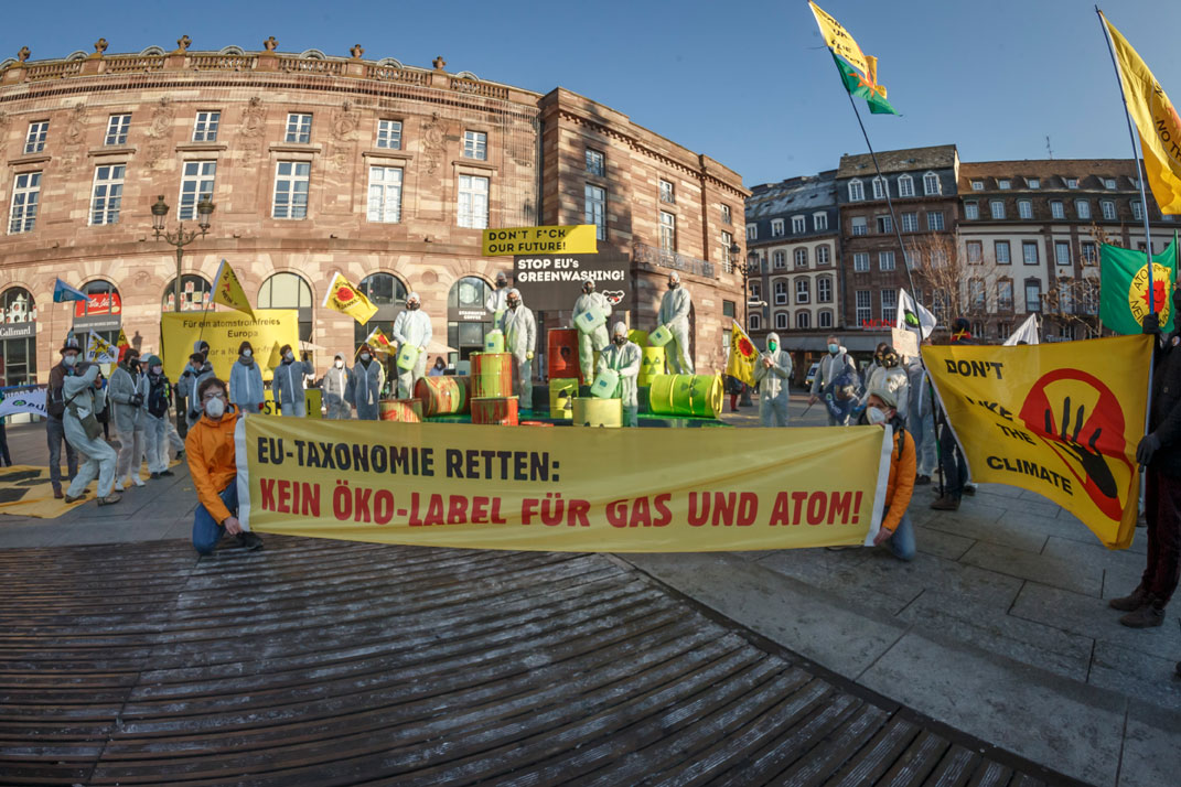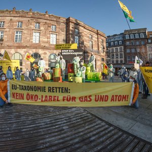 Wir gehen noch einmal auf die Straße! Anfang Juli wird das Europäische Parlament über die Aufnahme von fossilem Gas und Atomkraft in die EU-Taxonomie abstimmen. Ein europaweites Bündnis von Initiativen und Organisationen aus Klima- und Anti-Atom-Bewegung ruft die Abgeordneten vor der Abstimmung dazu auf, dieses skandalöse Greenwashing zu stoppen.