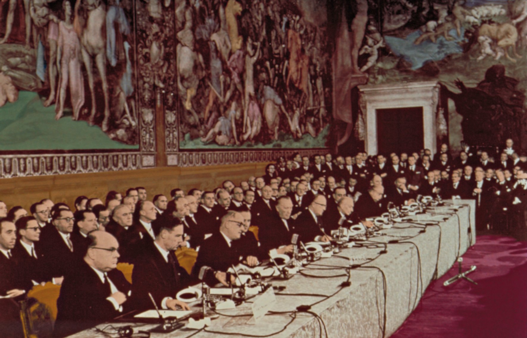 Gäbe es ein EU-Fossil, steinalt und verstaubt, aber unsterblich, gefangen im Gestern, nie reformiert, nie abgeschafft, selten sichtbar und doch noch immer wirkmächtig und hungrig – es wäre Euratom, die Europäische Atomgemeinschaft. Gegründet 1957 zum einen, um die „zweite industrielle Revolution“, die im damals anbrechenden Atomzeitalter nicht wenige sahen, zu meistern – die finanziellen, technischen und Rohstoff-Hürden waren im nationalen Alleingang kaum zu überwinden. Gegründet aber auch, weil Atomkraft ein damals noch unbeackertes Gebiet war, auf dem keine nationalen Souveränitäten beschnitten werden mussten. Befürworter*innen einer europäischen Integration sahen darin die Chance, diese zumindest auf diesem Teilgebiet zu erreichen. Sie koppelten diese Idee an die Bestrebungen jener, die eine rein wirtschaftliche Integration Europas anstrebten. Der Kompromiss war das Doppelpack „Gemeinsamer Markt plus Euratom“. Entsprechend unterzeichneten die Regierungschefs von Deutschland, Frankreich, Italien und den Benelux-Ländern am 25. März 1957 in Rom zwei Verträge: den über die Europäische Wirtschaftsgemeinschaft (EWG) und den über die Europäische Atomgemeinschaft (EURATOM).