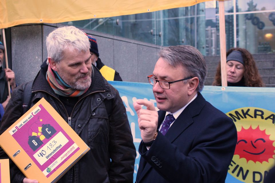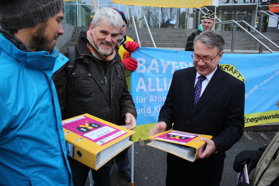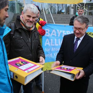 16. Dezember 2017 - Übergabeaktion auf dem CSU-Parteitag in Nürnberg: ausgestrahlt überreicht gemeinsam mit dem Umweltinstitut München über 40.000 Unterschriften an Dr. Georg Nüßlein, den stellvertretenden Vorsitzenden der CDU/CSU-Bundestagsfraktion für das sofortige AUS beider AKW-Blöcke. zur Pressemitteilung