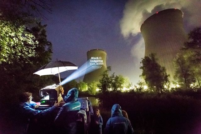 - 9. August 2017 - Nächtliche Projektion auf das Atomkraftwerk.