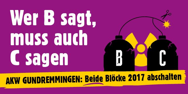 "Wer B sagt, muss auch C sagen. AKW Gundremmingen – Beide Blöcke 2017 abschalten!"