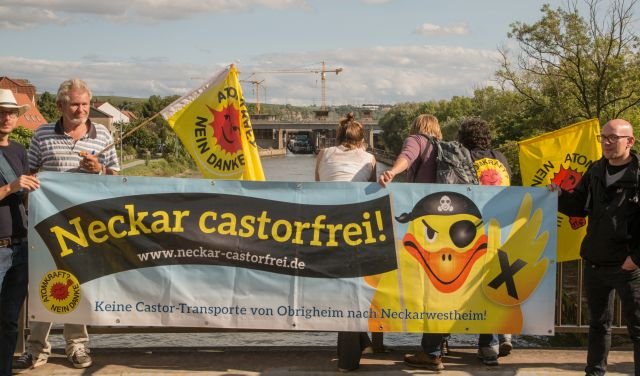 Im Laufe des Jahres 2017 wurden in insgesamt fünf Transporten auf dem Neckar 15 Castor-Behälter mit hochradioaktivem Atommüll aus dem AKW Obrigheim nach Neckarwestheim gebracht.