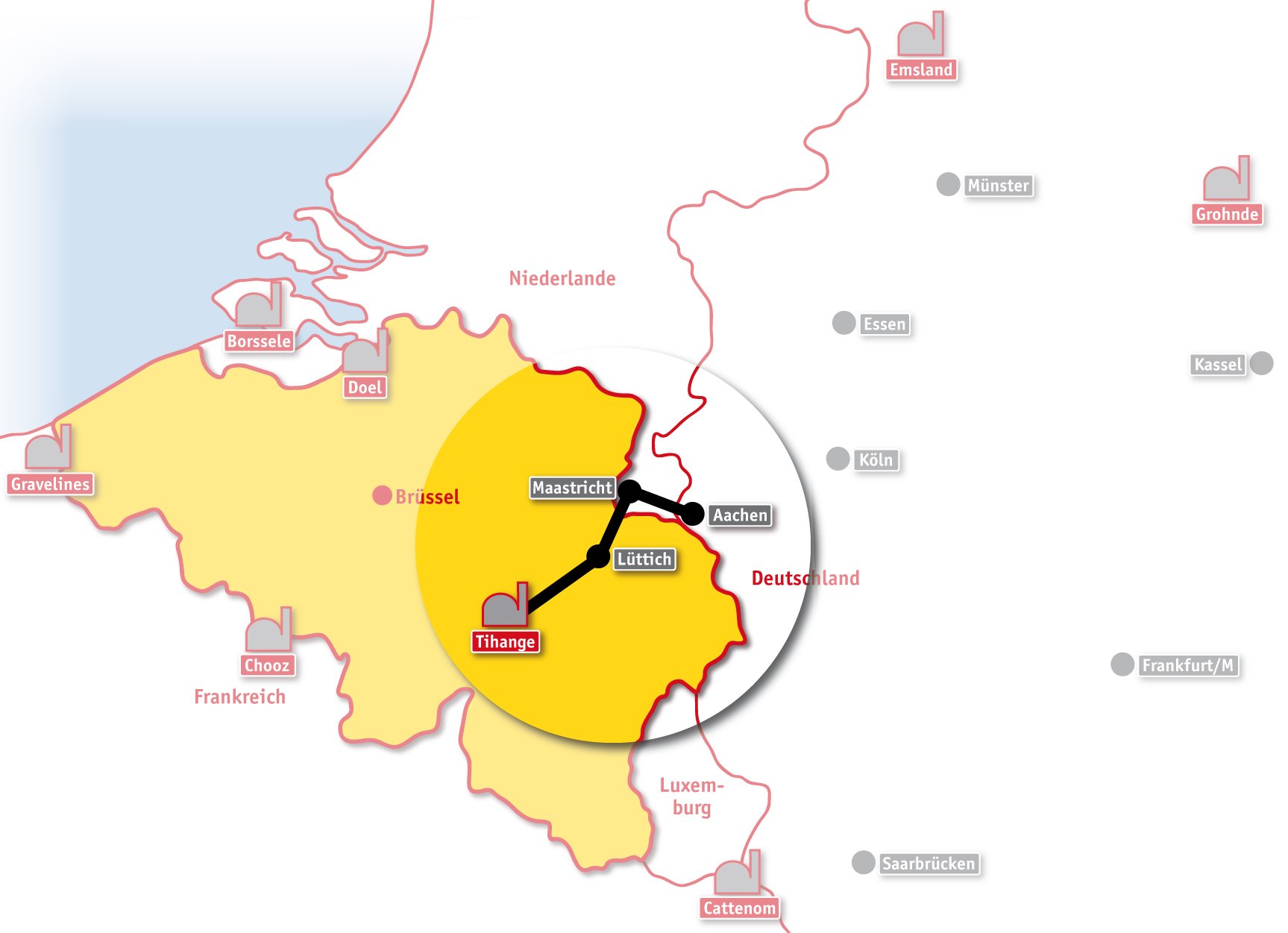 Tihange (B) – Lüttich (B) – Maastricht (NL) – Aachen (D)
